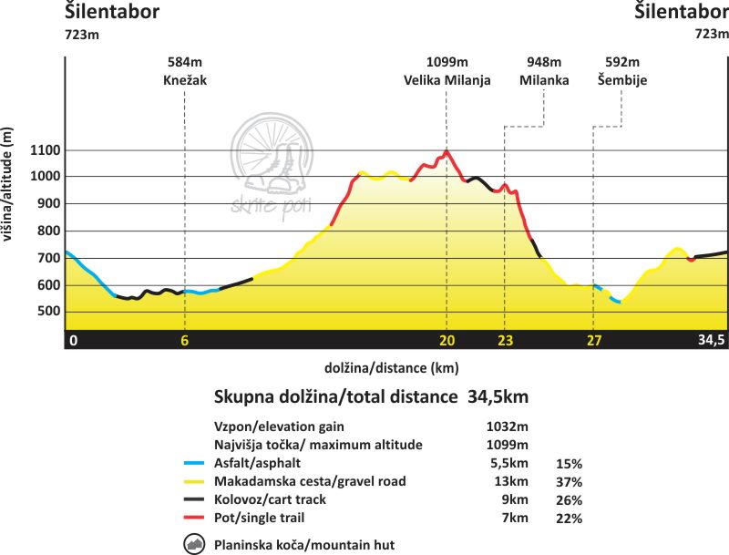 | Čas trajanja: 5,5 h | Dolžina: 34,5 km | Vzpon: 1032 m |