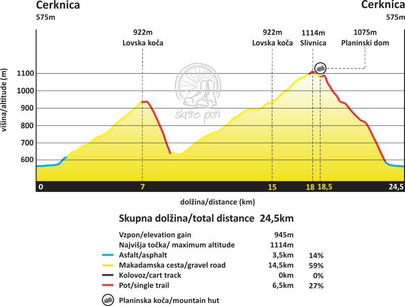 | Čas trajanja: 4,5 h | Dolžina: 24,5 km | Vzpon: 945 m |