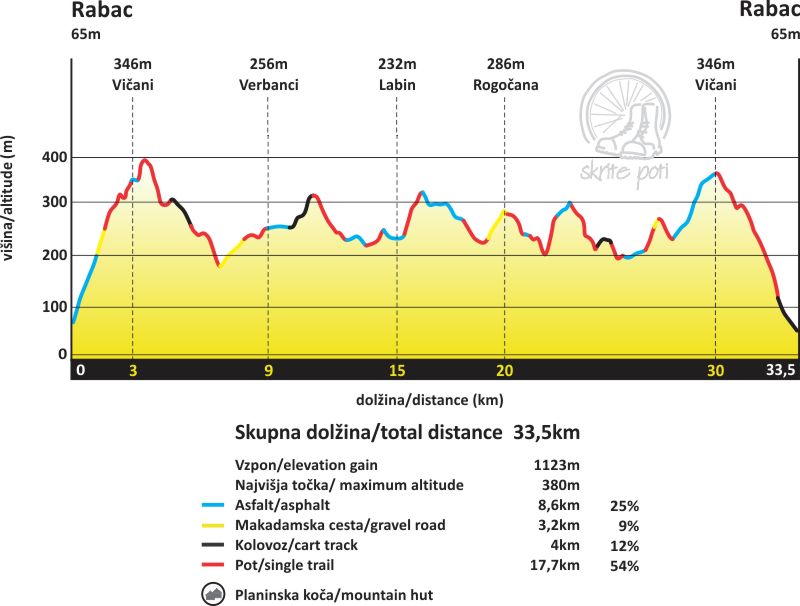 | Čas trajanja: 5,5 h | Dolžina: 33,5 km | Vzpon: 1123 m |