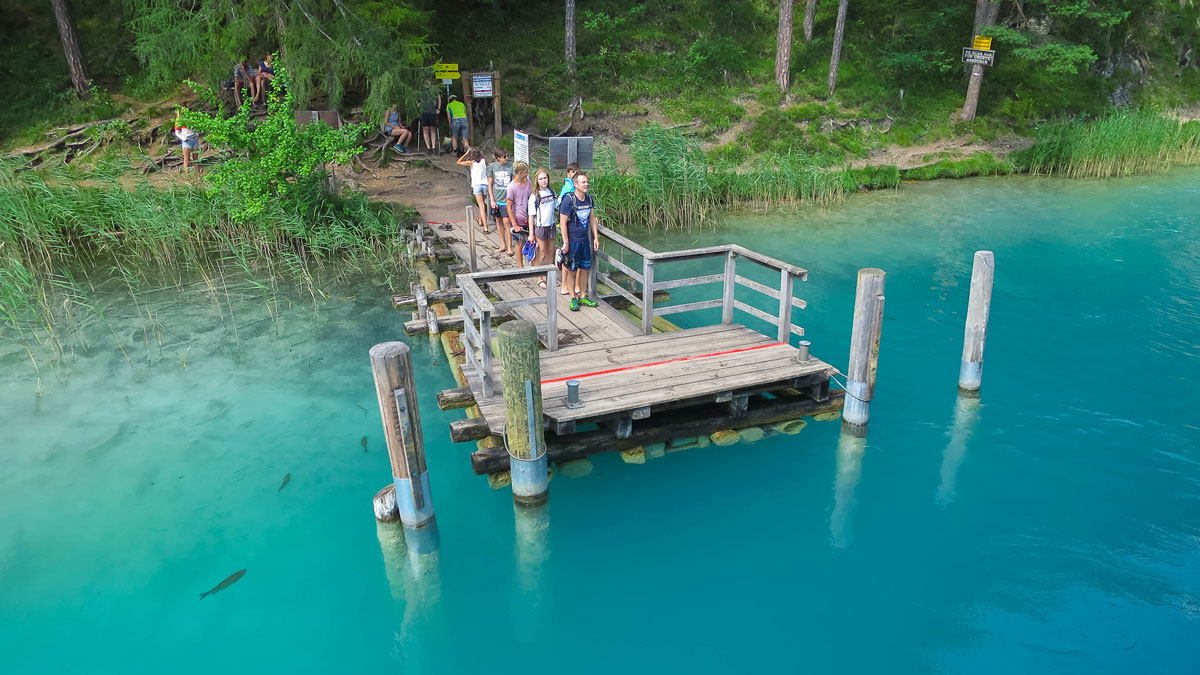 Po makadamski poti se ob jezeru se odpeljeva proti naselju Techendorf in Naggl. Peljeva se po rahlo dvigajoči se makadamski cesti proti Hermagorer Bodenalm. Približno 2 km pred Bodenalmom postane pot bolj strma. V Hermagorer Bodenalm je koča, kjer se lahko okrepiš za spust. Od zdaj naprej je šlo le še navzdol. Ko prideva do Weißenbacher, zavijte levo in nadaljujeva po asfaltni cesti do vzhodnega brega Weissensee. Tu skočiva v jezero in se ohladiva, ter počakava na ladjo. Na ladji uživava v lagodnem križarjenju in pristaneva v pristanu Gatschach. Od tu naprej se odpeljeva ob obali v kamp.