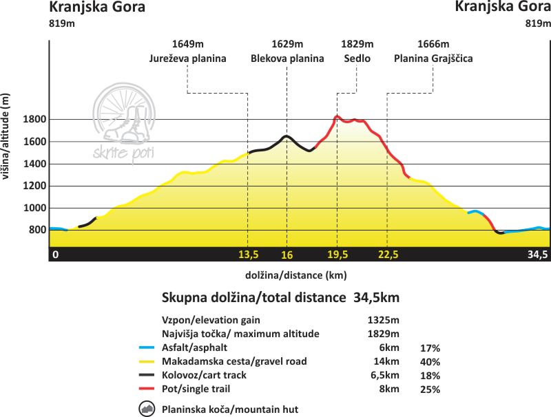 | Čas trajanja: 6,5 h | Dolžina: 34,5 km | Vzpon: 1325 m |