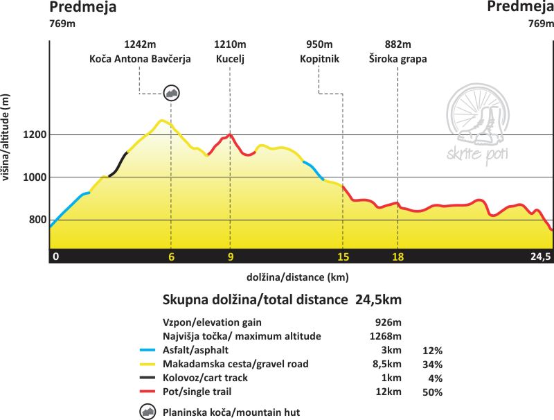 | Čas trajanja: 7,5 h | Dolžina: 24,5 km | Vzpon: 926 m |