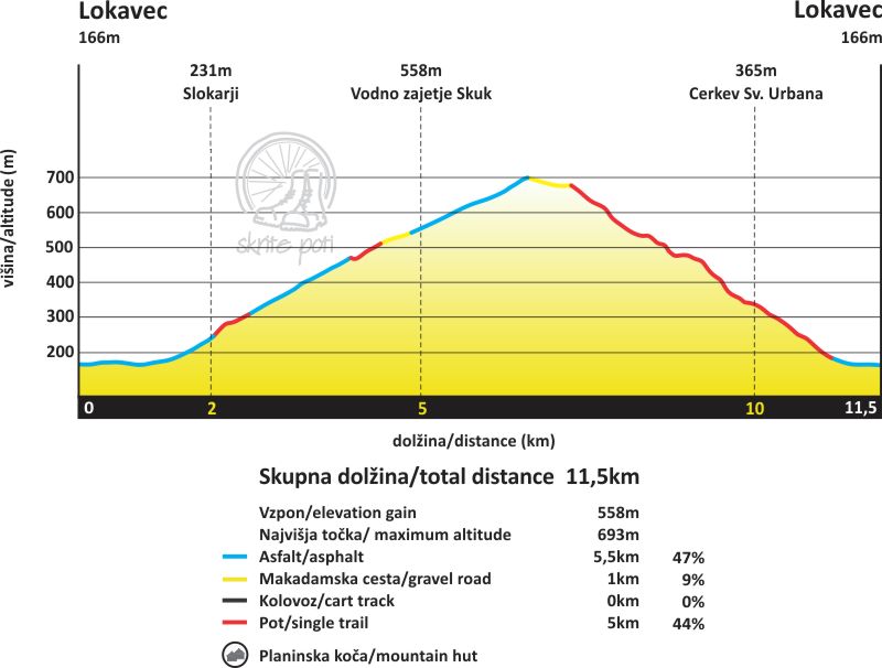 | Čas trajanja: 2,5 h | Dolžina: 11,5 km | Vzpon: 558 m |