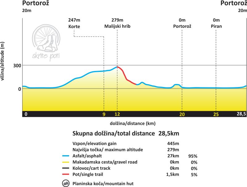 Portorož – Malijski hrib - Strunjan – Portorož - Piran - Portorož