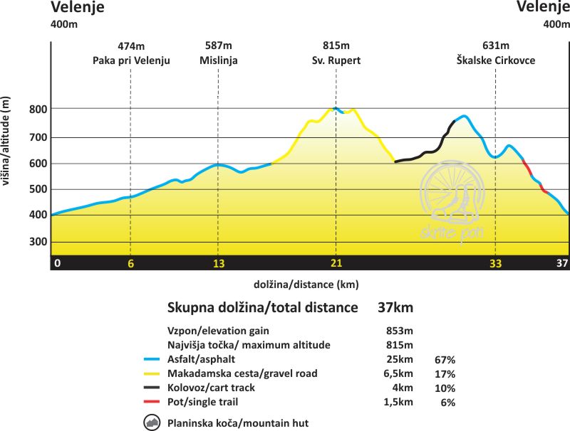 | Čas trajanja: 5,5 h | Dolžina: 37 km | Vzpon: 853 m |