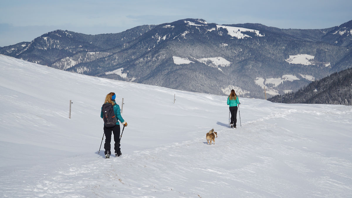 V zimskih razmereh se korak upočasni, še posebej, če gaz še ni utrjena. Tako tudi lažje poti postanejo malo zahtevnejše. Tale tura naj bi bila dogla skupaj le 8 km. Pa vendar smo samo do vrha potrebovali dobri 2 uri. Kondicijsko ni čisto nedolžna. Verjamem pa, da je v poletnih dneh veliko bolj enostavna. Ima pa eno veliko prednost: je čisto brez izpostavljenih delov. Tako je za vse tiste, ki se boljite višine zelo primerna. Sprva večji del poteka po gozdni cesti. Hoja po gozdni cesti v zimski idili je nekaj lepšega. Zadnji del poti poteka po travnikih in pašnikih ter je zelo panoramski. Pogled sega na vse strani visokogorja Kamniško Savinjskih Alp. Obvezna oprema v zimskim razmerah so visoki gojzerji in gamaše (preprečijo, da bi nam sneg padal v gojzerje). Tura izgleda primerna tudi za gorsko kolesarjenje. To poskusiva poleti.
